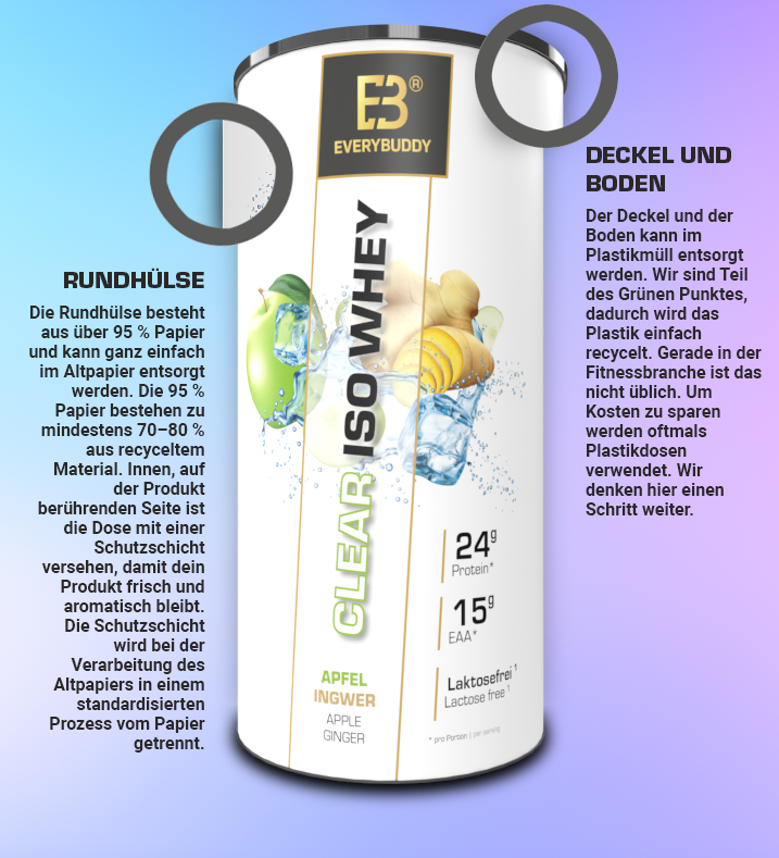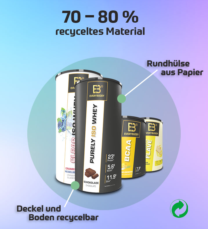 Damit ihr lange was von euren EVERYBUDDY Produkten habt und Euch die Dosen easy auf Vorrat legen könnt, haben wir durch unsere Verpackungen, Haltbarkeit und Nachhaltigkeit vereint. Denn so könnt ihr einfach selber bestimmen, wann ihr einen Shake braucht, ohne Euch sorgen um die Haltbarkeit machen zu müssen.